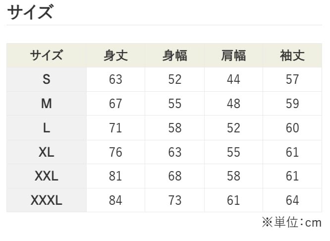 ※記載のないサイズ XL~XXLも制作可能です。備考欄にご記入ください。